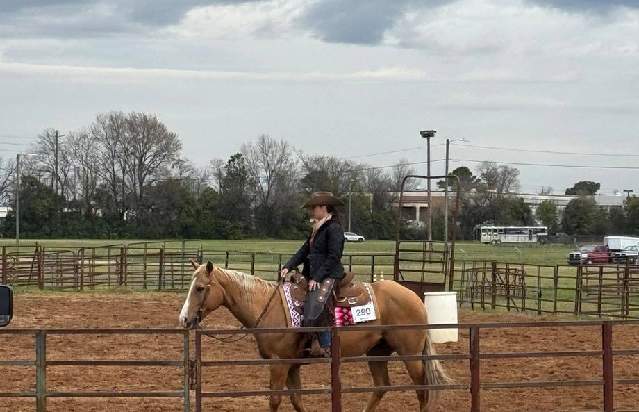 Dolly takes everything in stride, never worrying or looking to spook. She has a great “been there done that” type of aura, and a wonderful disposition anyone can get along with. If you need a gentle confidence booster that is 𝐜𝐨𝐦𝐟𝐨𝐫𝐭𝐚𝐛𝐥𝐞 𝐭𝐨 𝐫𝐢𝐝𝐞, quiet minded, and has more whoa then go, then you need this gal in your barn! 𝐅𝐢𝐧𝐢𝐬𝐡𝐞𝐝 𝐢𝐧 𝐬𝐡𝐨𝐰𝐦𝐚𝐧𝐬𝐡𝐢𝐩, this mare is a machine and knows her maneuvers well. She can strut out for the ranch pleasure or HUS classes AND will easily come right back to you off your seat or vocal cue. Dolly prefers to take it slow, she is only going to give you what you ask. She will jog around on a 5 foot draped rein all day long comfortably. She will stop on a dime, back soft, and will pick up both leads with ease. Dolly has been used to 𝐩𝐮𝐬𝐡 𝐜𝐚𝐭𝐭𝐥𝐞, sort, and ship cattle on the ranch. She has 𝐞𝐱𝐭𝐞𝐧𝐬𝐢𝐯𝐞 𝐭𝐫𝐚𝐢𝐥 𝐦𝐢𝐥𝐞𝐬 under her belt, you can ride her out alone or with a group safely. She doesn’t mind falling behind in the pack and will lead the group bravely when asked. There isn't much this mare hasn't done. Dolly never hesitates when being asked to step over logs, through water, or over bridges. When the occasional deer pops out of the woods – no worries there too. This gal has been seasoned quite a bit off property including: riding in the annual Houston Parade downtown, local covered arenas, trail outtings, horse shows and more. She is just a dream to haul + take off property! Dolly requires NO lunge prep. She is honest and kind EVEN with time off! She will ride the same whether you ride her once a week or once every few months.